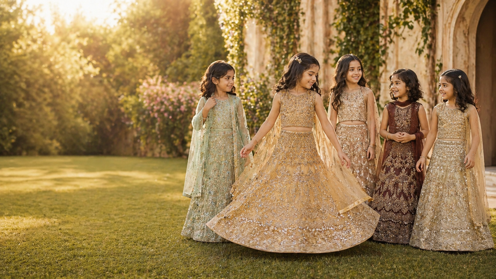 champagne gold heavy bids work lehenga